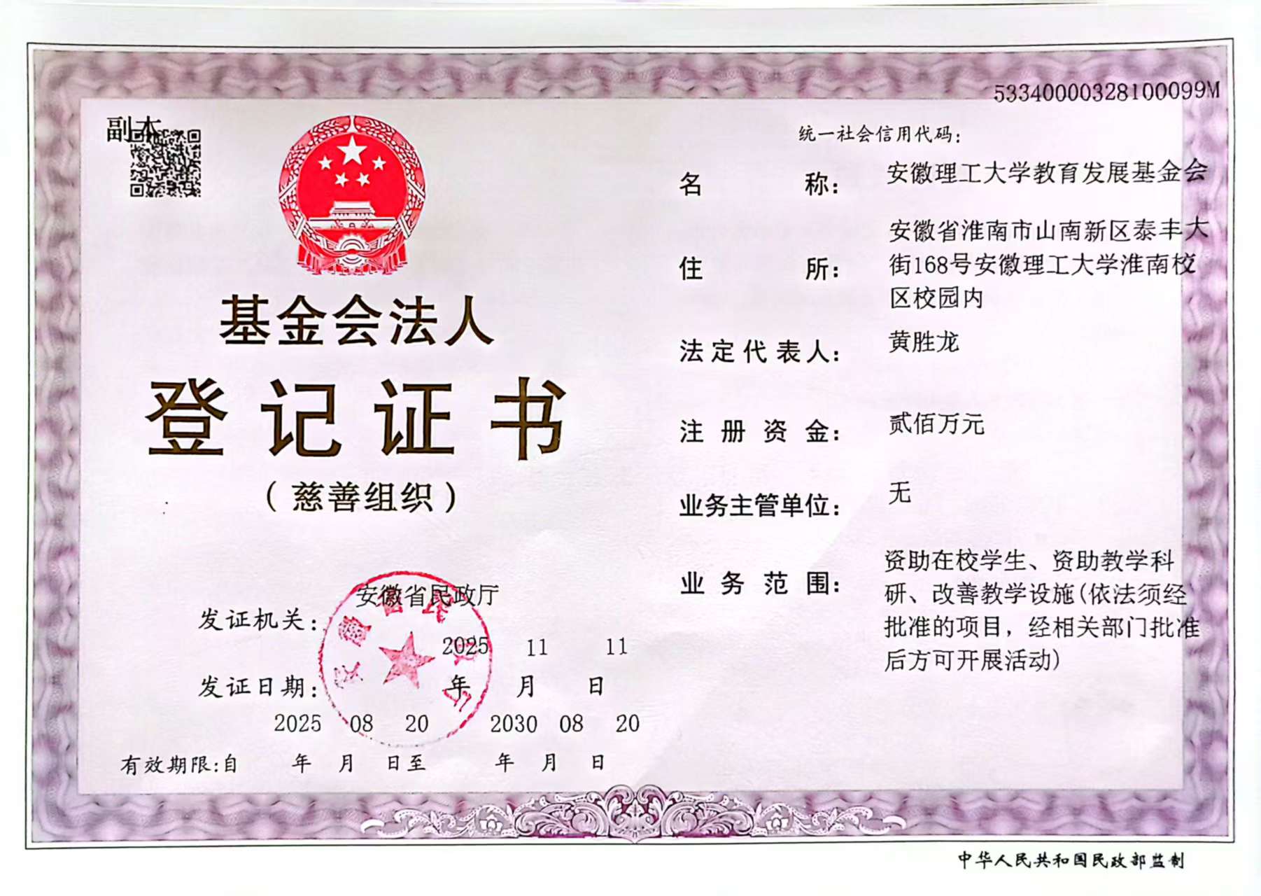本基金会公益活动的业务范围是:向社会各界募集资金和接受社会捐赠;设立基金资助项目,基金主要用于支持安徽理工大学教育事业;管理、运作基金,使基金保值增值。