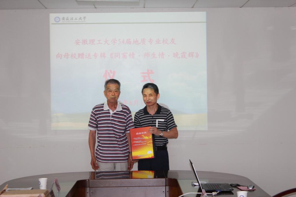 赠送仪式上,李振声和汪国柱分别代表地质54届校友发言。他们向母校介绍了地质54届校友共同编辑《同窗情·师生情·晚霞辉》专辑的经过,深情追忆校园生活、抒发感恩母校情怀。李振声校友回顾了当年在母校学习、生活的时光,讲述了同学之间的互帮互助,老师对学生的无私付出,讲述了师生一起寻找煤矿、石油和矿石的难忘经历。“母校就是自己的家、自己的母亲”,李振声饱含深情地表达了一个莘莘学子对母校的深深眷恋。