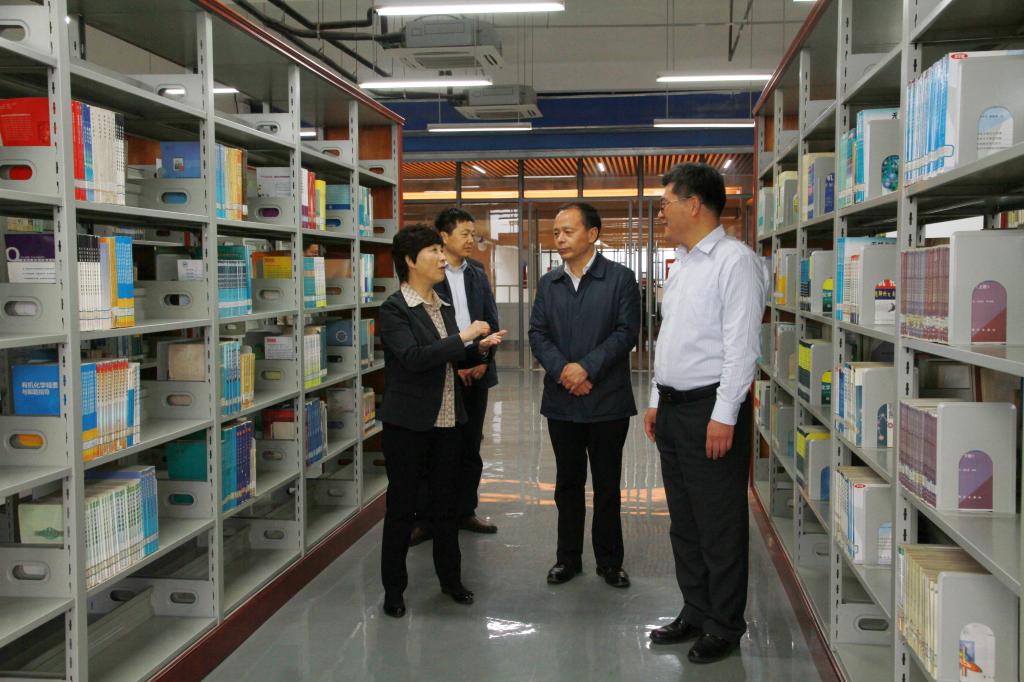 肖超英一行参观图书馆书库(左一:肖超英)(摄影:张雷)