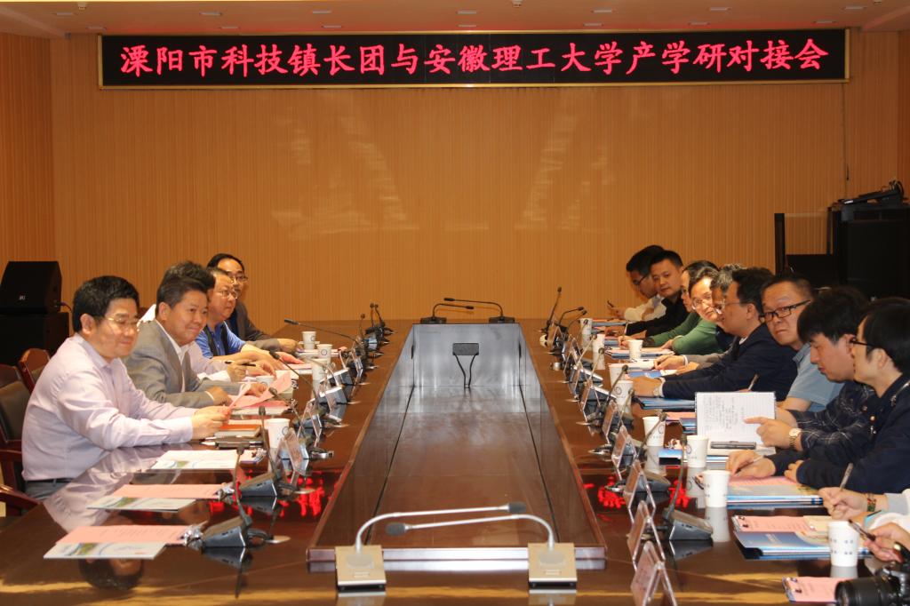 5月8日下午,安徽理工大学与溧阳市科技镇长团产学研对接会在舜耕苑二楼会议室举行。校党委副书记、副校长袁亮院士,溧阳市副市长、科技镇长团团长郁平等出席会议。