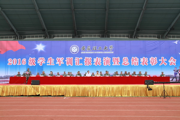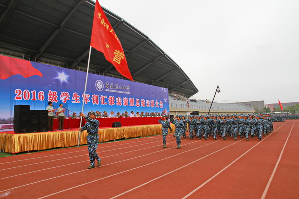2016级学生军训汇报表演暨总结表彰大会在嘹亮激昂的《中国人民解放军军歌》声中圆满结束。