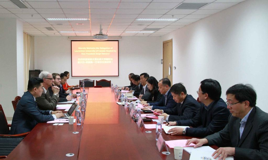 11月1日,加拿大劳伦森大学副校长兼教务长塞尔日·德莫斯、助理副校长克里斯·莫瑟、国际部项目主管梁进,加拿大国际教科文交流协会会长、加拿大徽商总会副会长马骏一行4人来我校访问交流。党委书记郭永存和副校长孟祥瑞在行政楼1210会议室亲切会见了代表团一行。会见由副校长孟祥瑞主持。