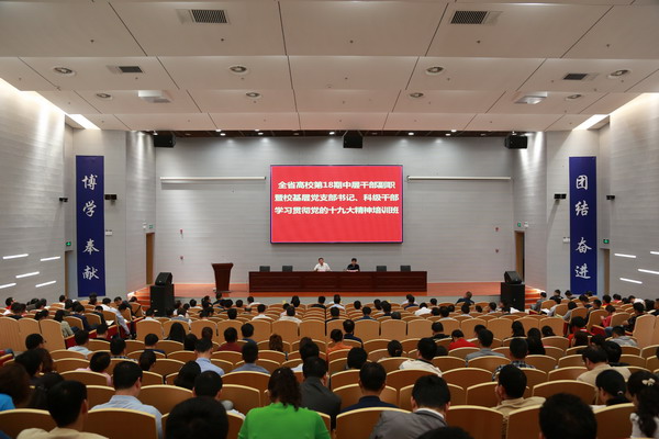 本次培训班于4月26日至5月11日举办,全体学员集中收看了省委书记李锦斌学习贯彻党的十九大精神动员报告,中央宣讲团宁吉喆宣讲党的十九大精神报告,省政协副主席、省教育厅厅长李和平在全省高校学习党的十九大精神第1期轮训班上的辅导报告以及中央党校洪向华教授的“坚定不移全面从严治党,不断提高党的执政能力和领导水平”等辅导报告录像,认真听取了安徽大学哲学系教授、博士生导师裴德海的“实现社会主义现代化强国的行动指南”,安徽省直工委党校张佩琳副教授的“新时代 新章程 新要求”,安徽省委党校副校长王正国教授的“我国经济发展与现代化经济体系建设”等三场专题辅导报告,先后参加了3次分组讨论并开展个人自学活动。专家报告从多维度和视角解读了习近平新时代中国特色社会主义思想和党的十九大精神的深刻内涵,阐述了中国特色社会主义进入新时代的伟大意义。分组讨论中,学员们结合专题报告和自学材料,围绕如何在实际工作中贯彻落实习近平新时代中国特色社会主义思想和党的十九大精神展开交流,畅谈心得体会,并对学校的改革和发展提出了建设性意见和建议。