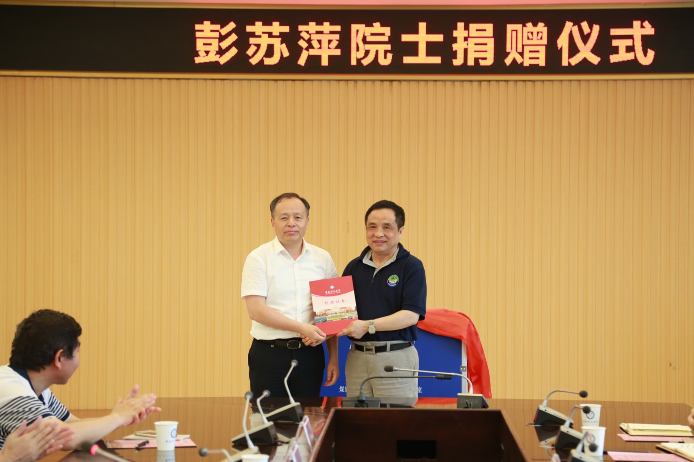 郭永存为彭苏萍院士颁发了捐赠证书,对彭院士的母校情怀深表感动。他指出,彭苏萍院士是我校杰出校友,更是我们敬重的校友,一直以来关注母校,支持母校,助力母校建设发展。学校有今天的成绩与彭苏萍院士这样的杰出校友密不可分。此次彭苏萍院士的仪器捐赠,更为重要的是其精神财富,它超出了物质本身的价值和意义。我们要做好弘扬与传承,大力宣传彭苏萍院士心系母校、感恩母校、回馈母校的精神和情怀,在广大校友中发挥引领示范作用。同时,要做好校友会各项工作,学校在未来建设发展和复兴梦实现的征途上,永远离不开广大校友的支持。