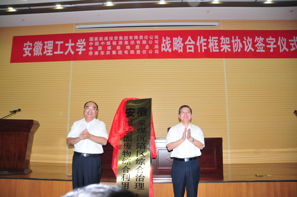 袁亮与李懋共同为安徽煤系固废物综合利用与采煤沉陷综合治理研究院成立揭牌(摄影:王航)