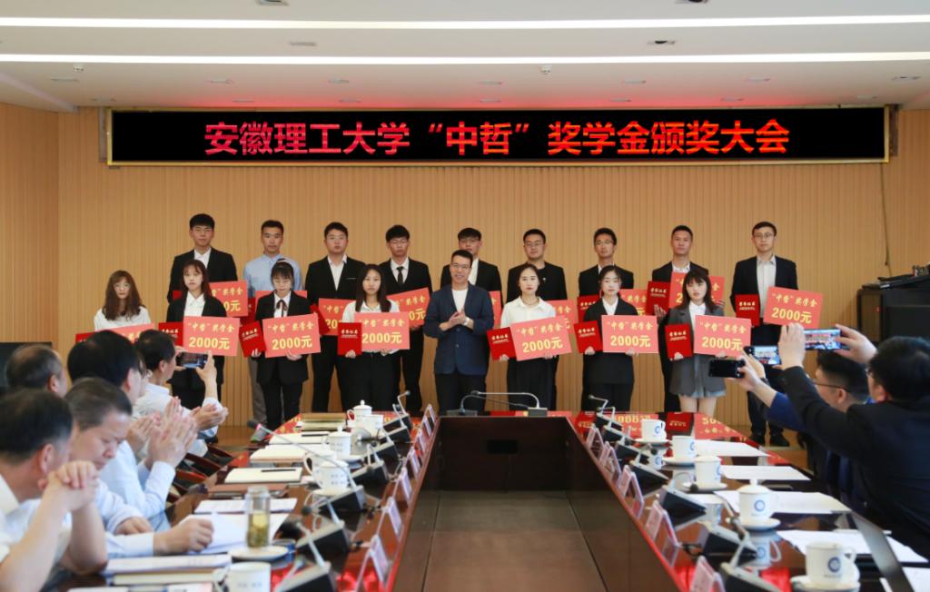 仪式上,宫能平宣读了《安徽理工大学关于表彰2019-2020学年度“中哲”奖助学金获得者的决定》。