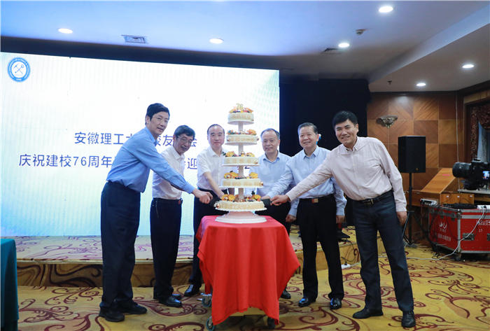 为庆祝母校76岁生日,合肥校友会代表全体校友为母校献上生日蛋糕,校领导郭永存、袁亮、虞宝桃与校友代表程桦、桂来保、闫红新共同切开蛋糕,将活动推向了高潮。