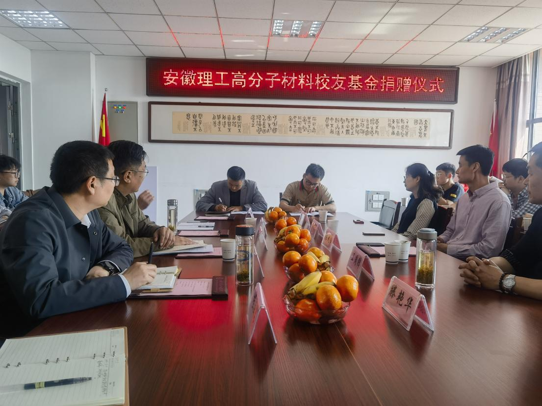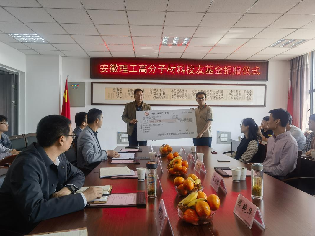 5月12日上午,“安徽理工高分子材料校友基金”捐赠仪式在崇义楼B306会议室举行。优秀校友代表2010届高分子校友、天长市智途工程设计服务有限公司总经理陈大伟、合作发展处副处长窦家环、材料学院领导班子成员、专业师生代表出席。捐赠仪式由学院业务副院长王庆平主持。