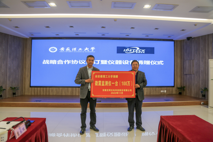学校党政办公室、科研部、能源安全与清洁利用学部、合肥高等研究院、安全科学与工程学院、土木建筑学院、合作发展处等内设机构负责人及至博光电相关领导参加了合作协议签订暨捐赠仪式。